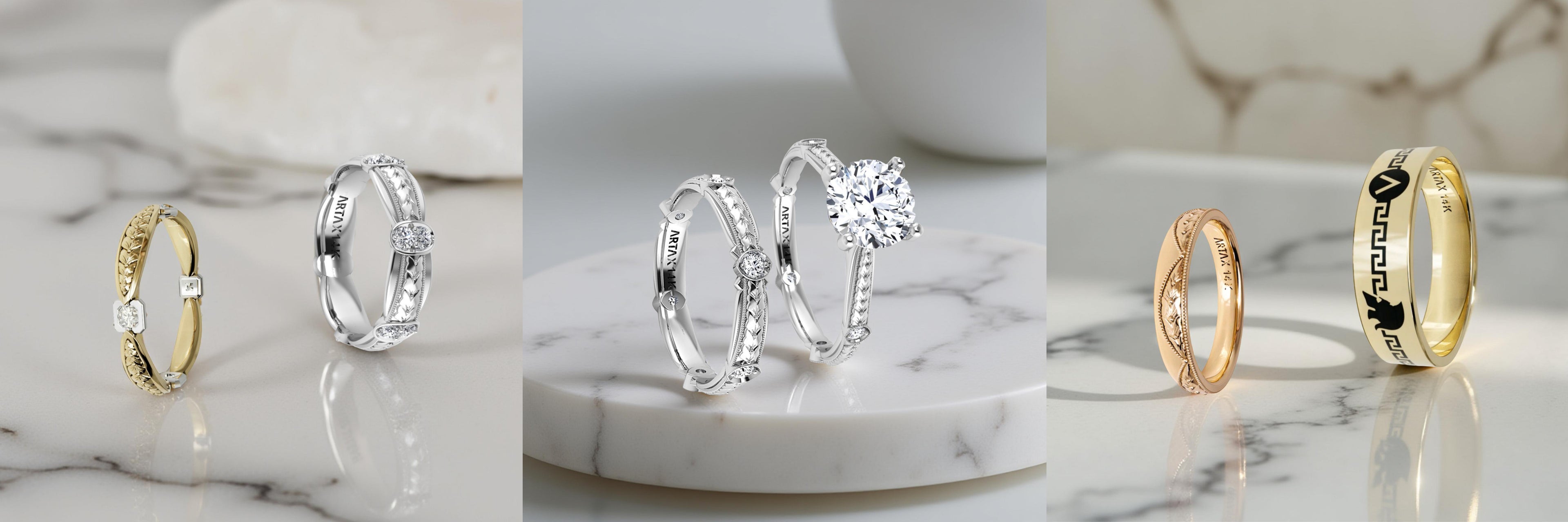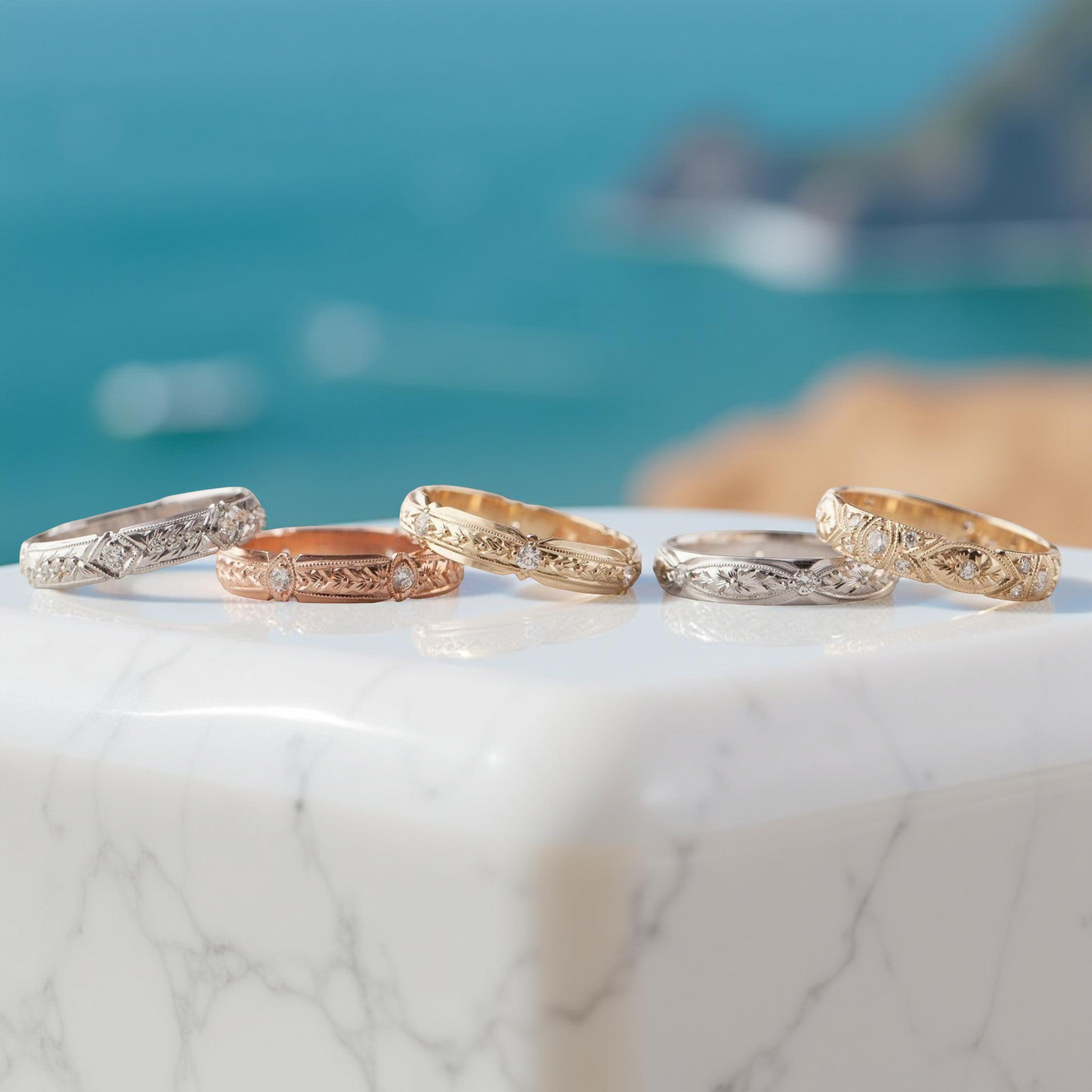 AMALFI | 14K Double-Level Scroll Carved Wedding Ring