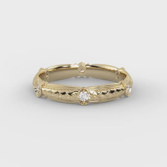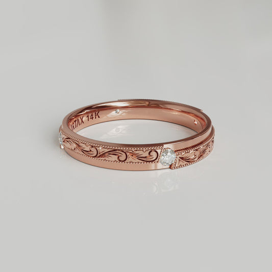 PARIS | 14K Hand-Engraved Pave Diamond Wedding Ring