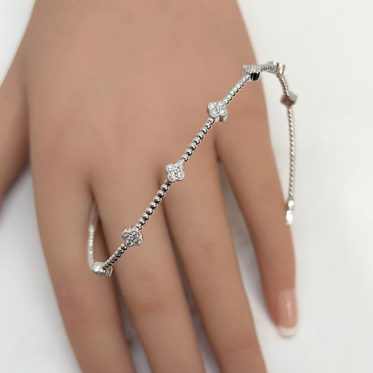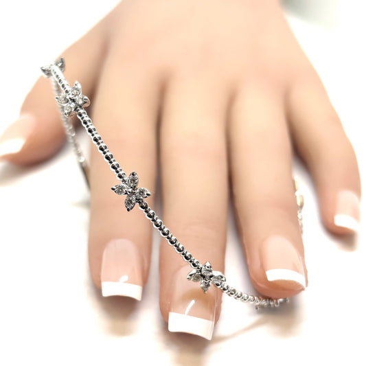 0.45 CT Diamond Clover 14K White Gold Flexible Dangle Bracelet, Handmade in Italy
