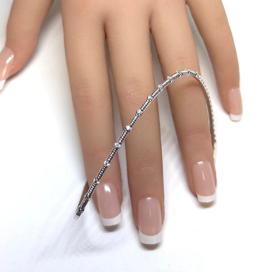 0.20 CT Diamond 14K White Gold Flexible Bracelet, Handmade in Italy