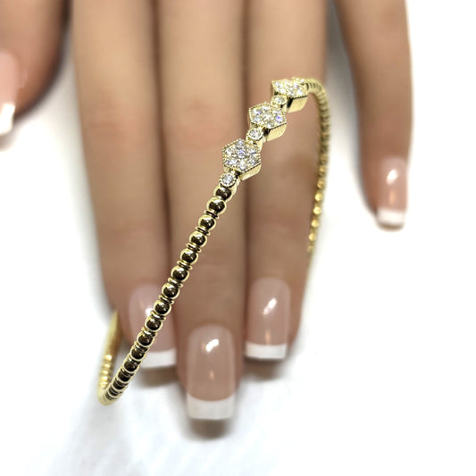 0.55 Ct. Handmade Flexible Diamond Bangle Bracelet, 14k Yellow Gold. Made in Italy