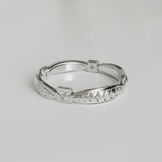 FLORENTIA. Hand-Carved Double-level Diamond Wedding Band