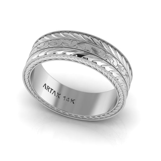 MAGNA | 14K Unisex All-around Hand-carved Wedding Ring
