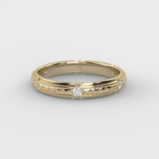 BARCELONA | 14K Hand-engraved Diamond Eternity Wedding Band