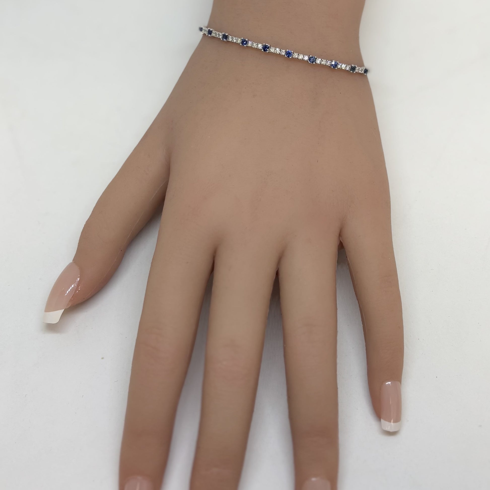 14K White Gold 0.45 Ct Diamond and 0.65 Ct Sapphire Flexible Dangle Bracelet, Handmade in Italy