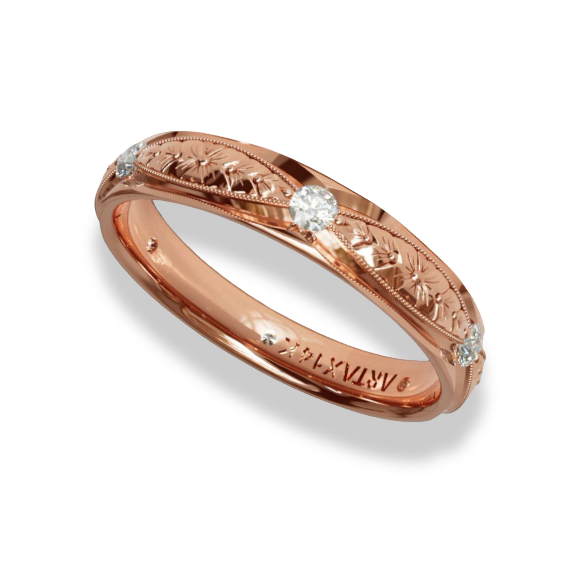 This exquisite piece is a true work of art, meticulously crafted to reflect the rich cultural heritage of Armenia. The intricate patterns and designs on the band pay homage to the ancient architectural wonders and historical landmarks of Armenia, showcasing the country's deep-rooted history and unique artistic traditions. The sparkling diamonds set in the ring symbolize eternal love and unity, making it a perfect gift for someone special or a stunning addition to your own jewelry collection. With its timeless beauty, unique patters and levels, the ΛRΜΣΝΙΛring is sure to be cherished for years to come.