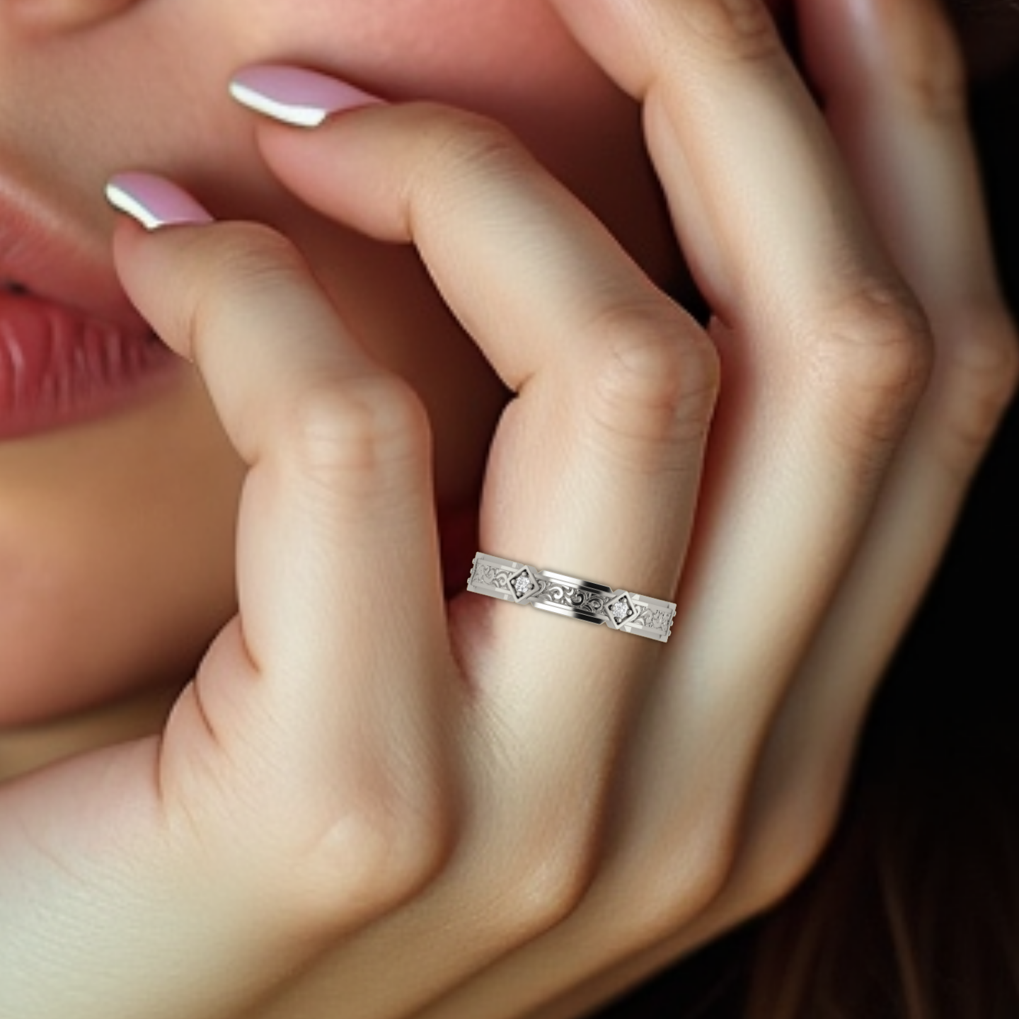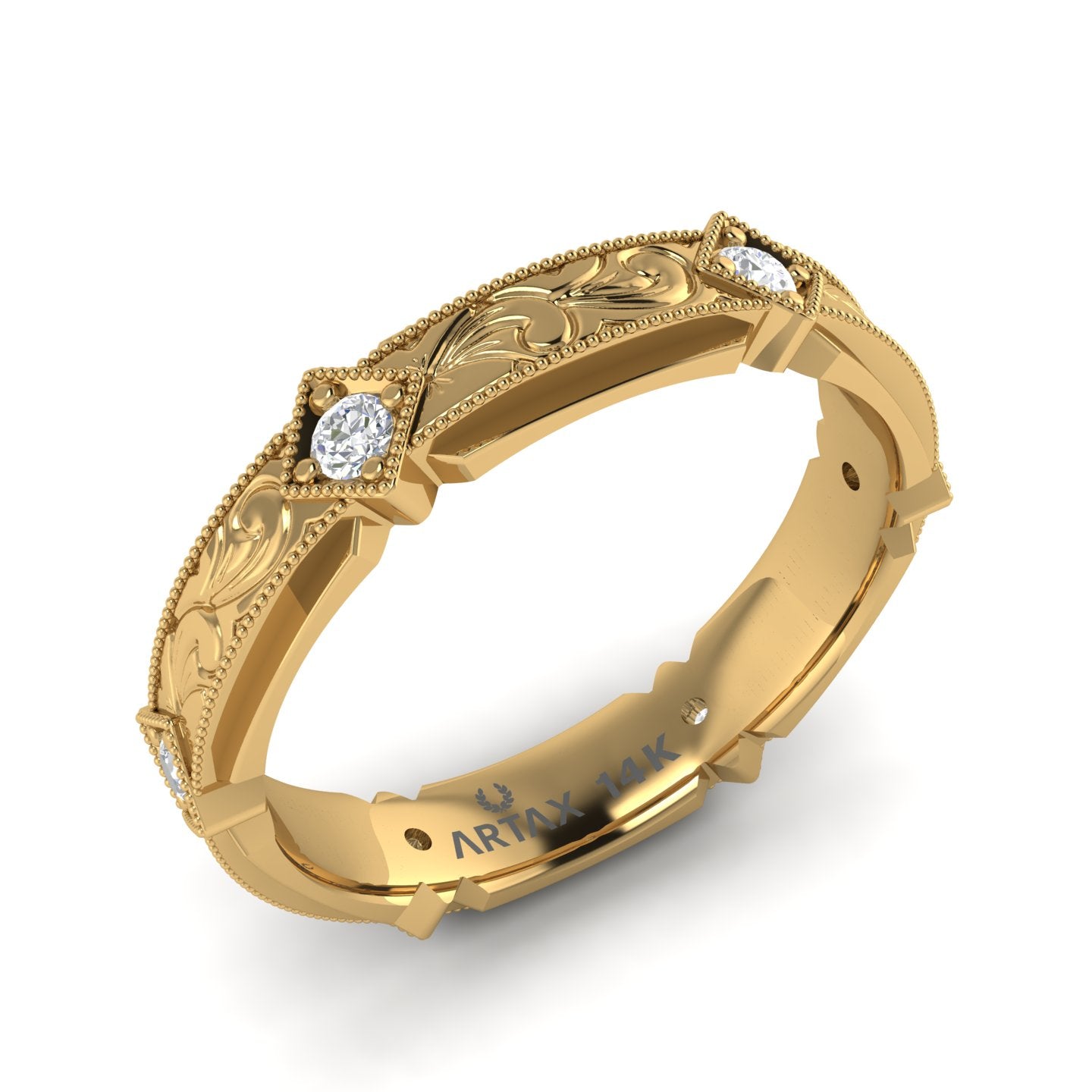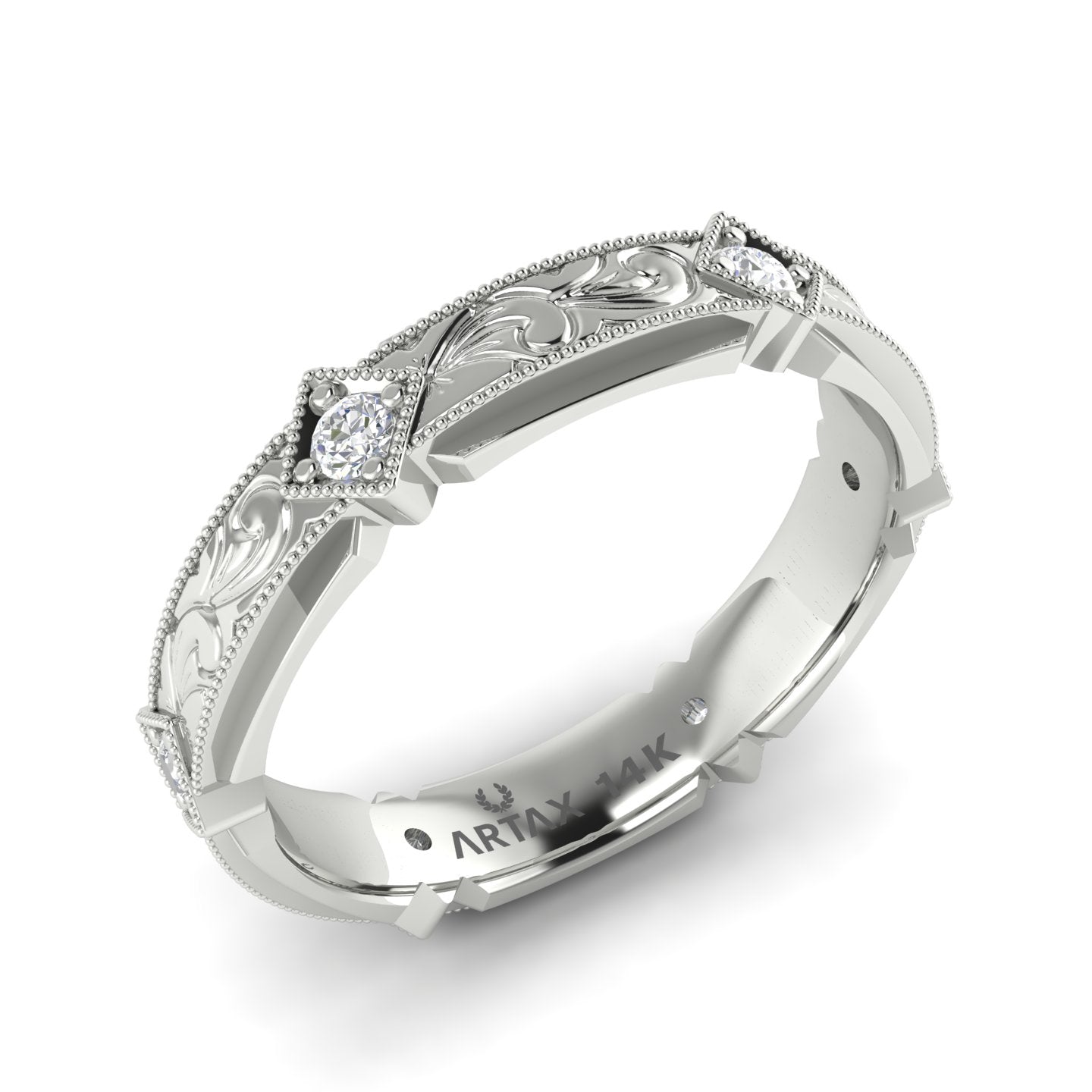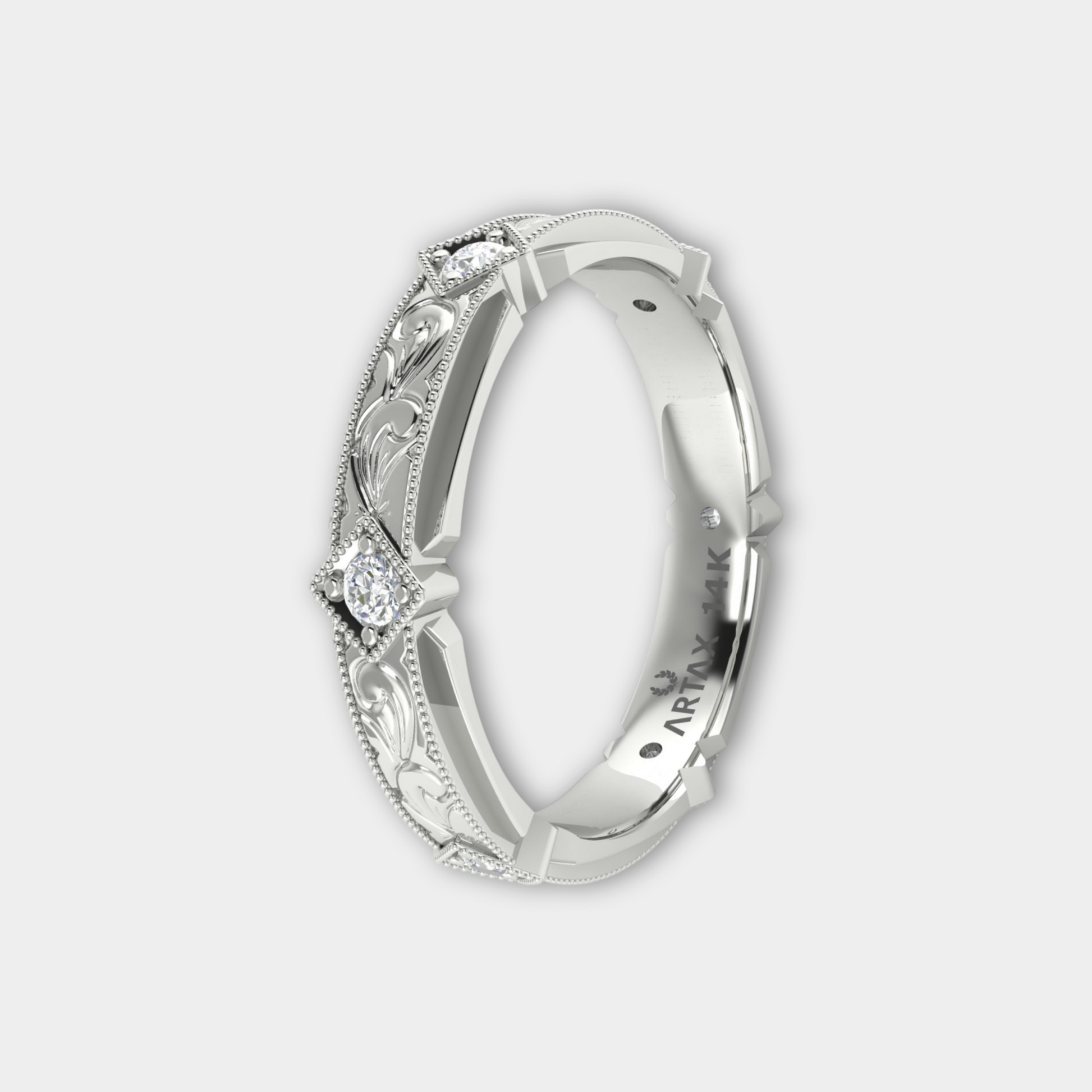 FLORENTIA. Hand-Carved Double-level Diamond Wedding Band