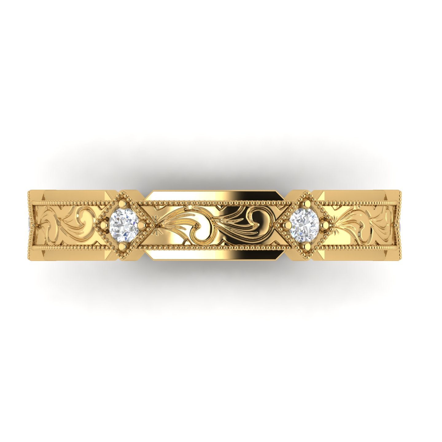 Captivating Florence Inspired Hand-Carved Pave Diamond Set Eternity Wedding and Anniversary Ring. This beautiful ring is enhanced by expertly hand-engraved scrolls and pave set diamonds that reflect the spirit and elegance of Renaissance Florence.