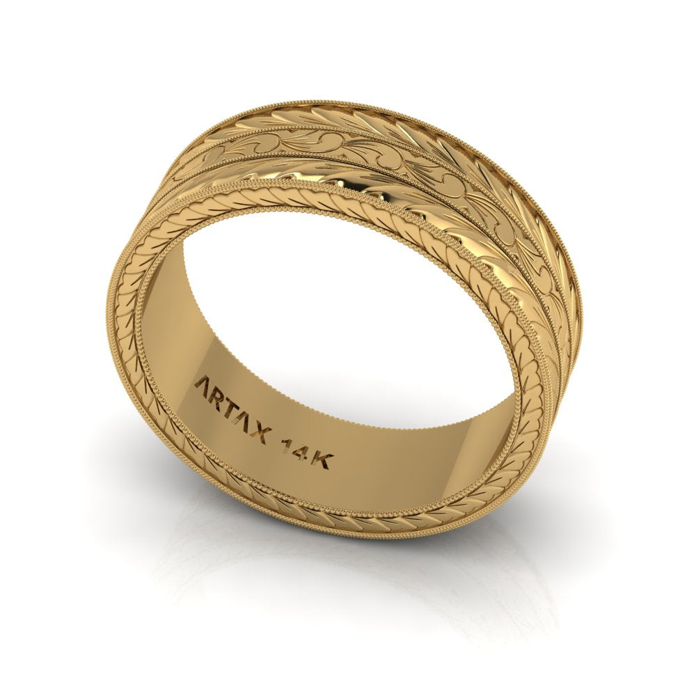 MAGNA | 14K Unisex All-around Hand-carved Wedding Ring
