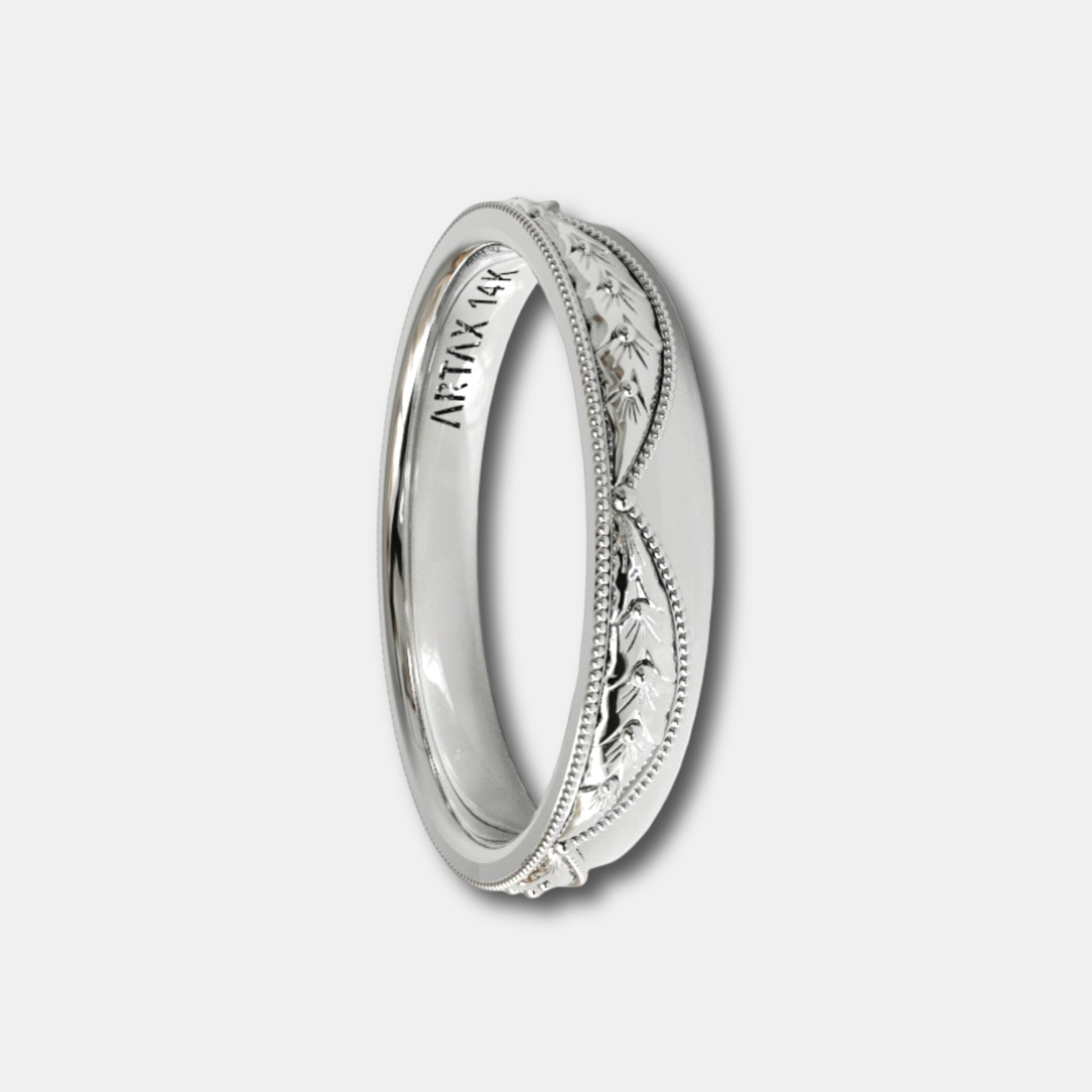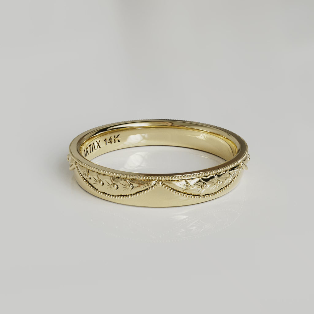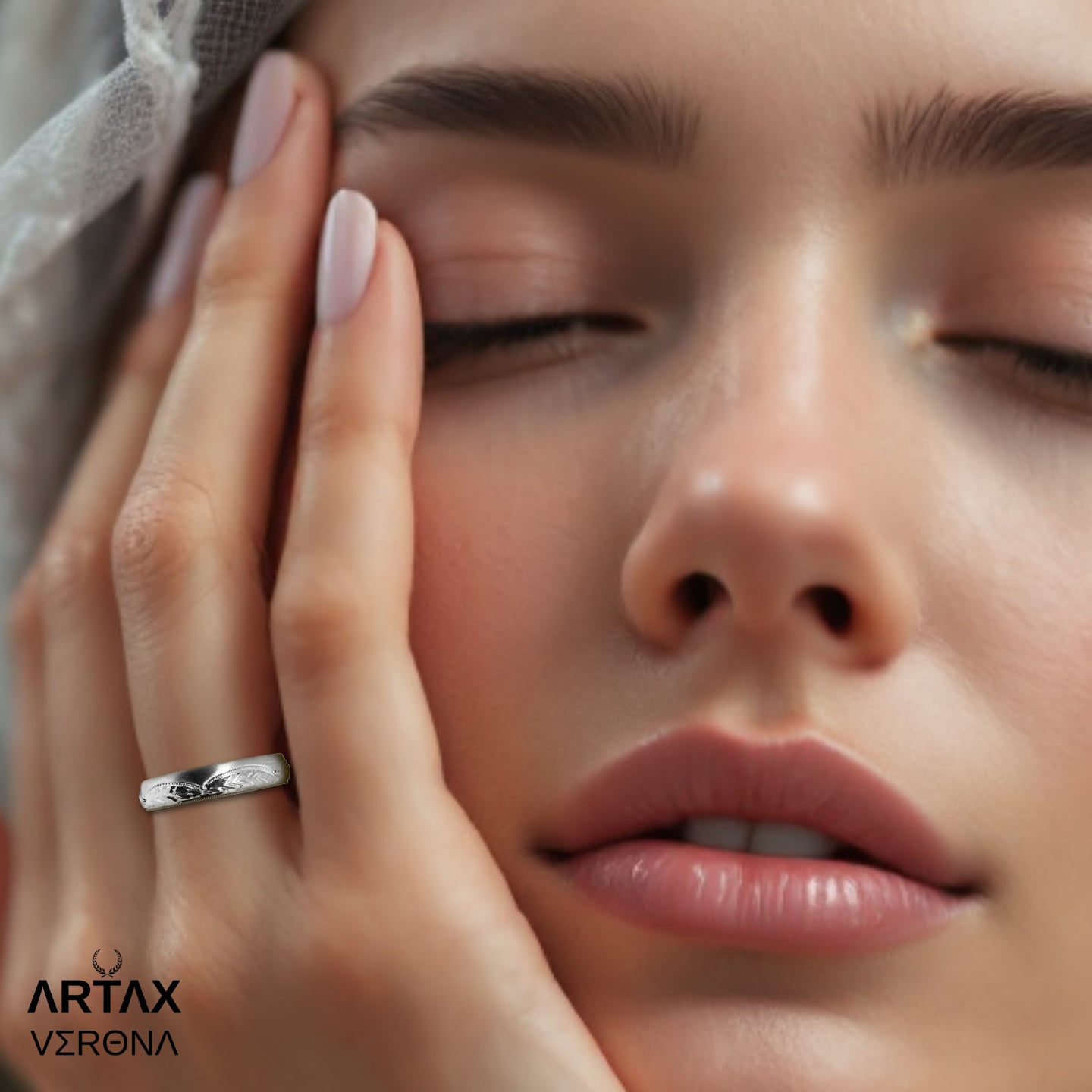 Inspired by the romantic city of Verona, Italy, known for its rich history and association with love stories like that of Romeo and Juliet, this wedding band encapsulates passion, artistry, and tradition. The combination of textures creates a visually appealing contrast that adds depth and sophistication to the design. This type of wedding band is a perfect choice for couples looking for a timeless and exquisite piece of jewelry to commemorate their special bond. VΣRΘΝΛ is not just a picturesque band; it’s a symbol of eternal love.