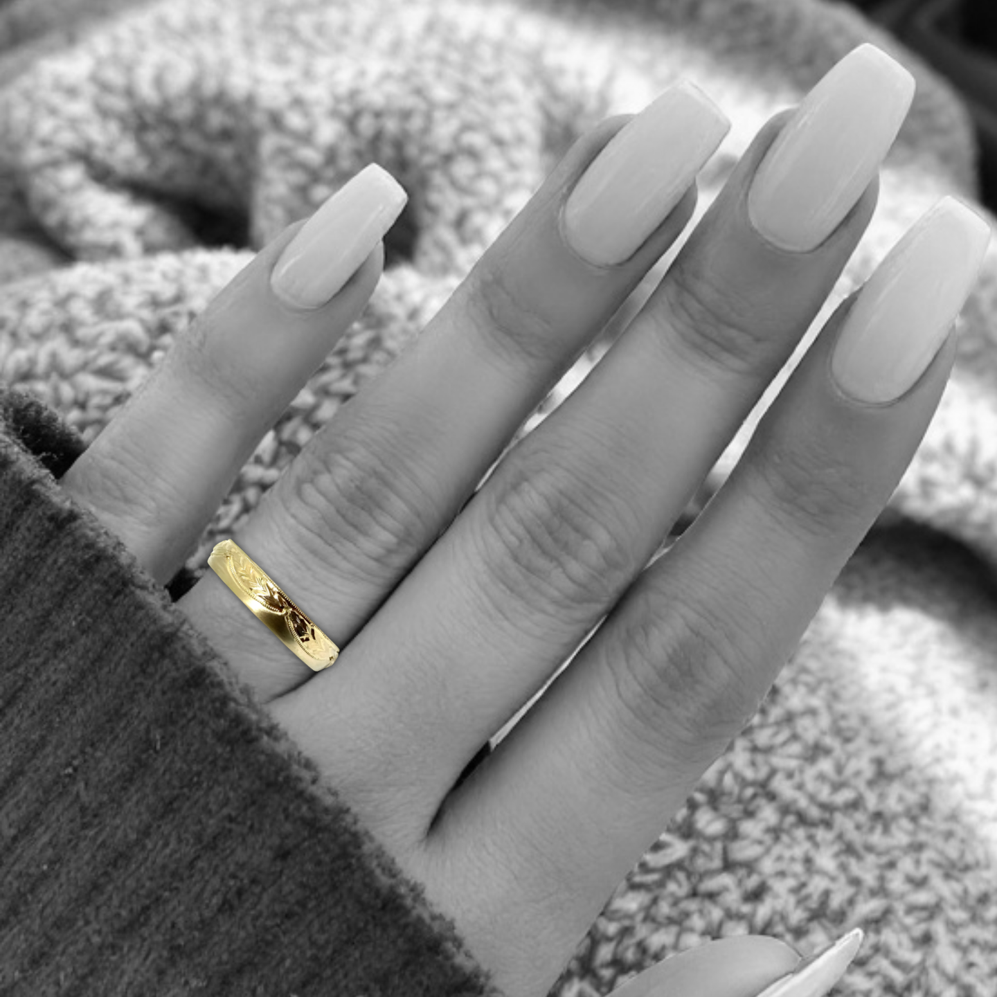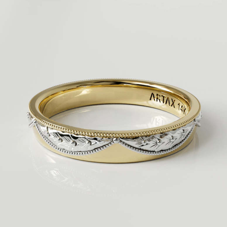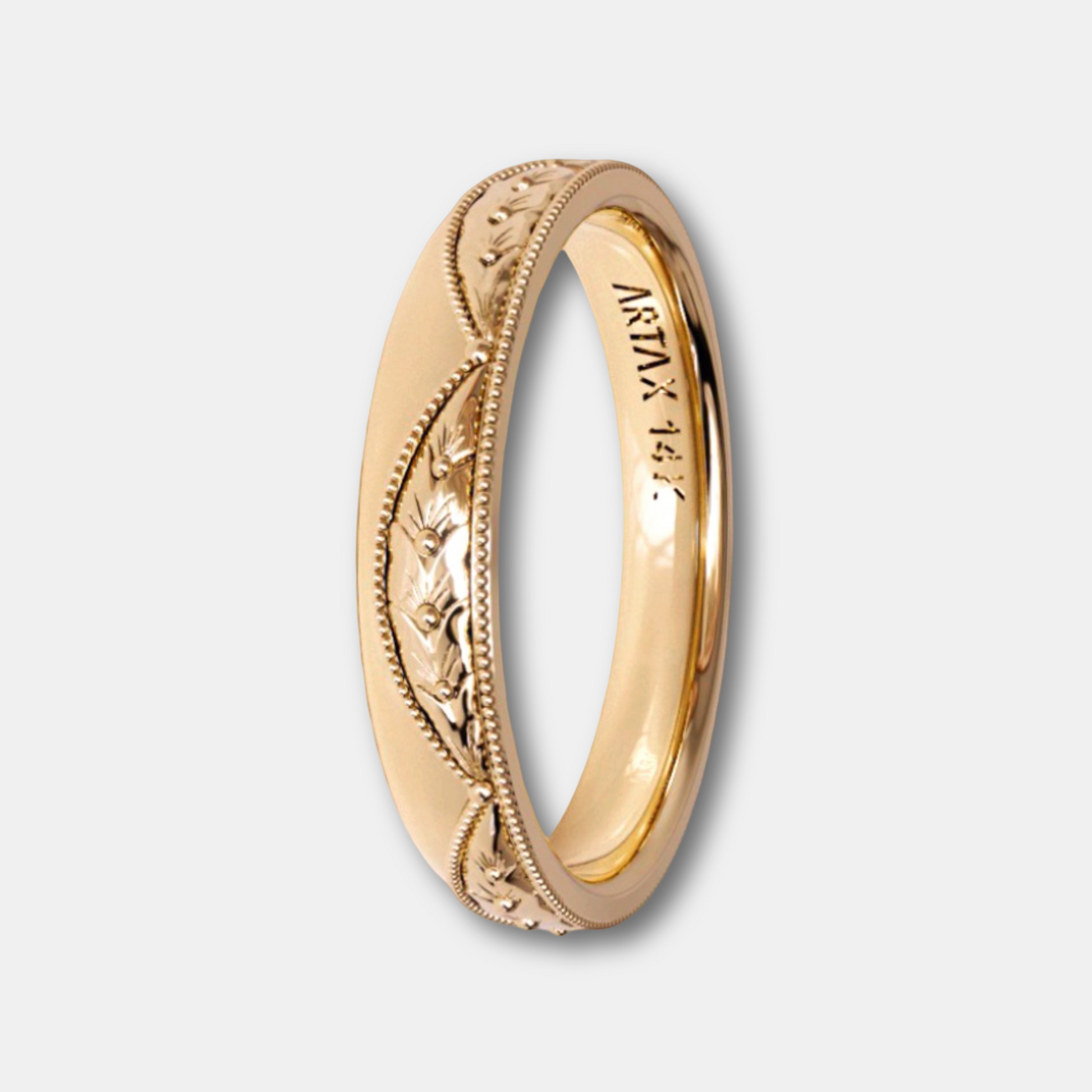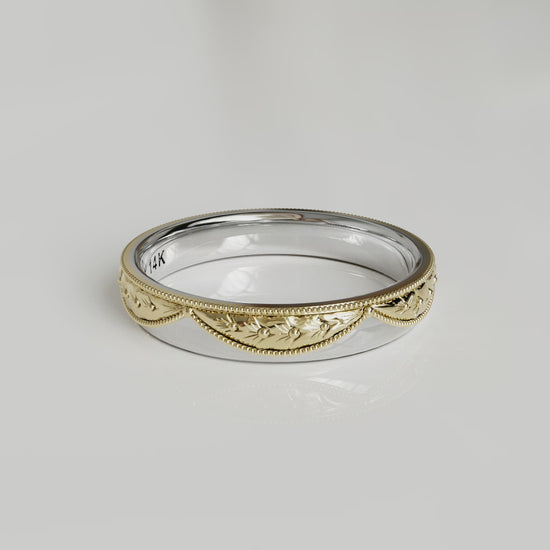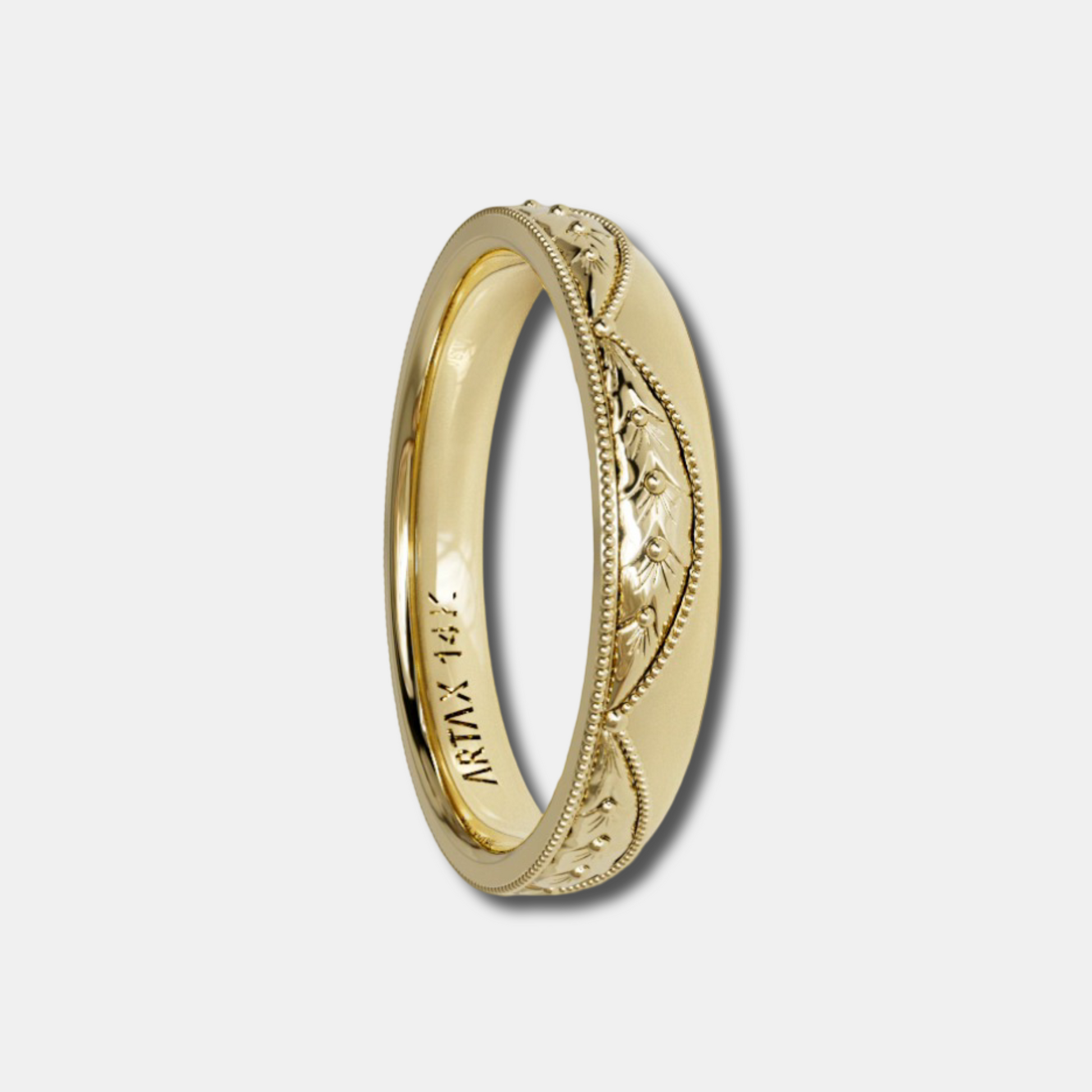 Inspired by the romantic city of Verona, Italy, known for its rich history and association with love stories like that of Romeo and Juliet, this wedding band encapsulates passion, artistry, and tradition. The combination of textures creates a visually appealing contrast that adds depth and sophistication to the design. This type of wedding band is a perfect choice for couples looking for a timeless and exquisite piece of jewelry to commemorate their special bond. VΣRΘΝΛ is not just a picturesque band; it’s a symbol of eternal love.