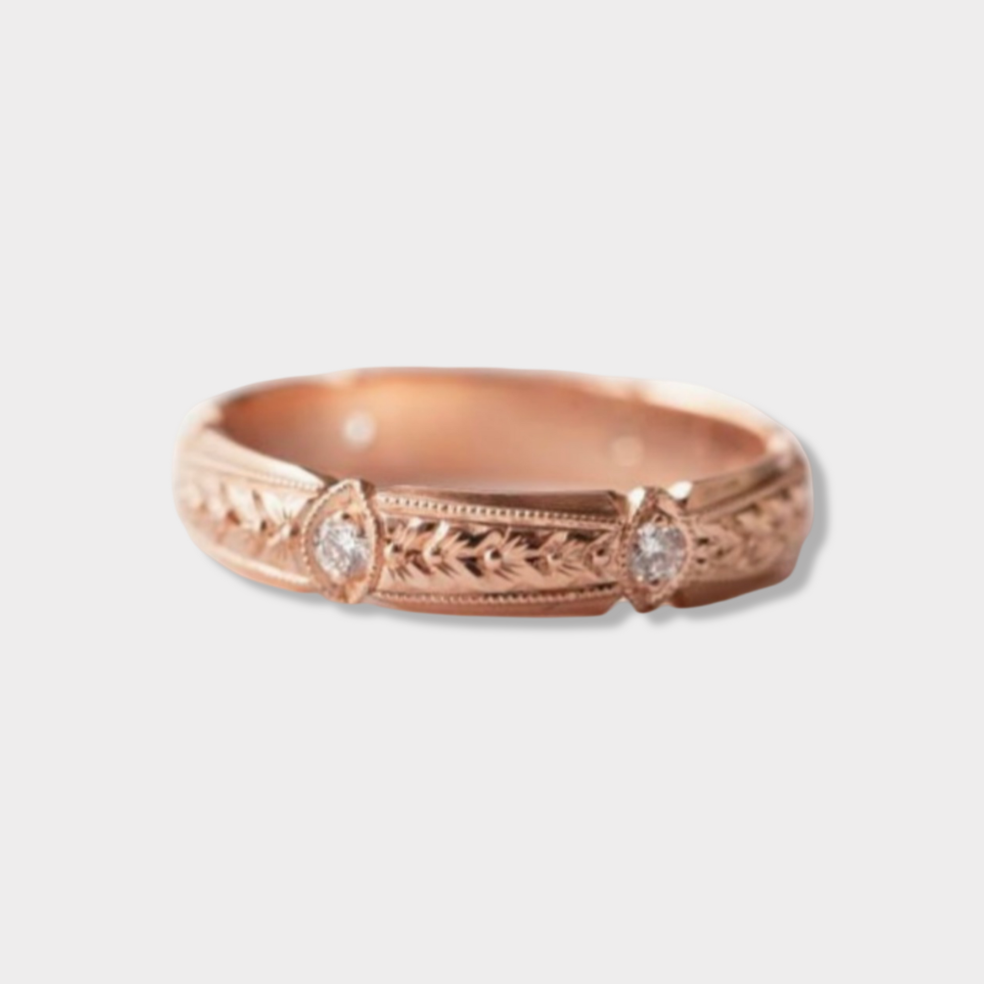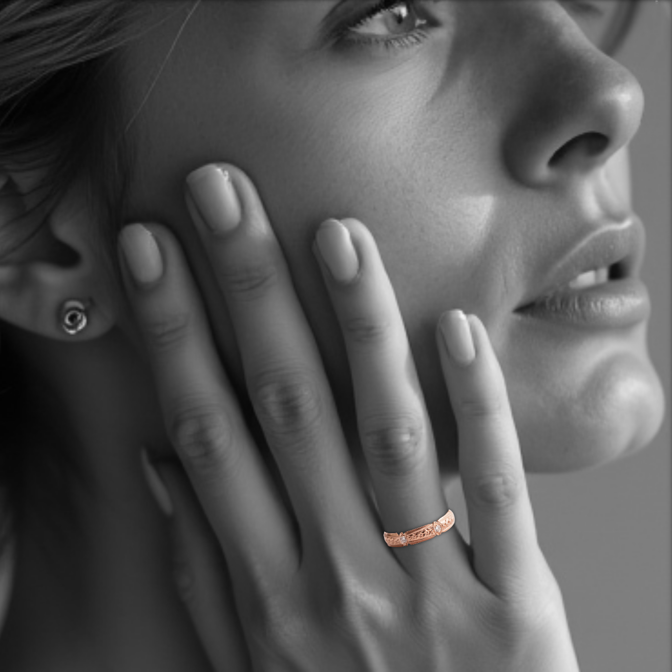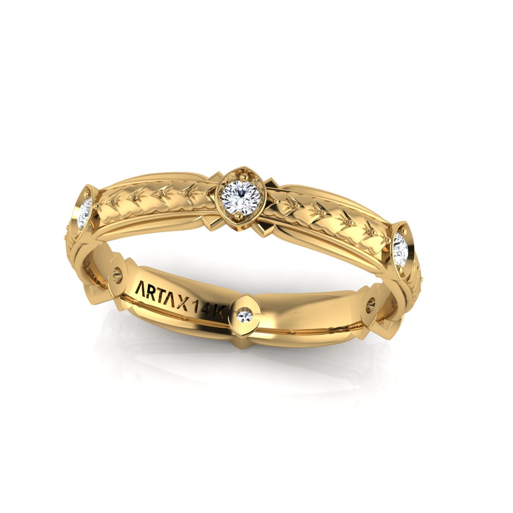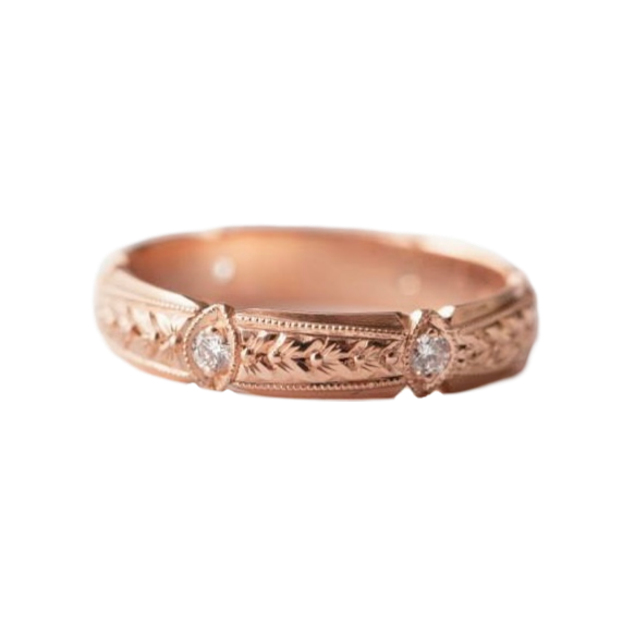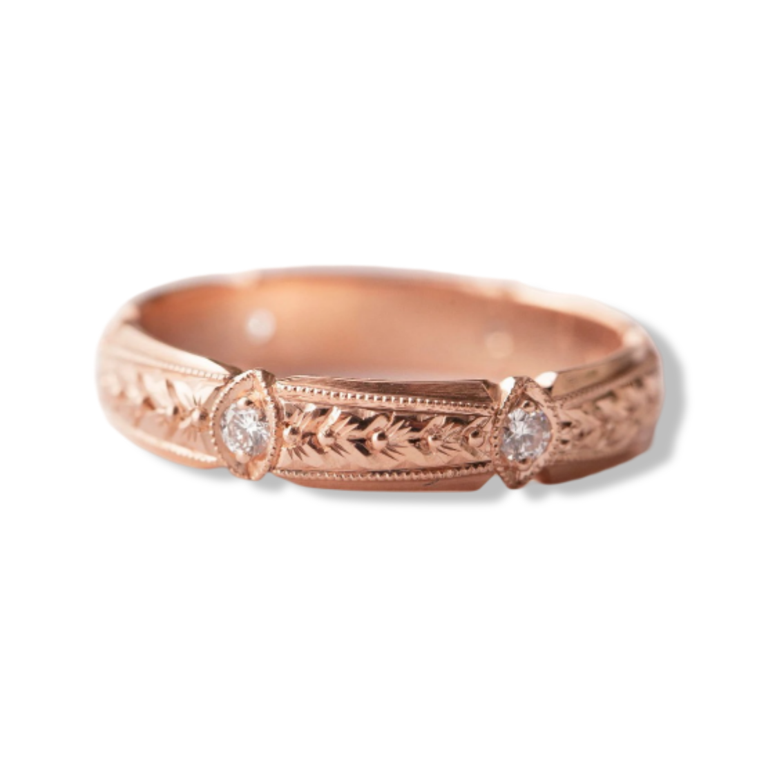 PARIS | 14K Hand-Engraved Pave Diamond Wedding Ring