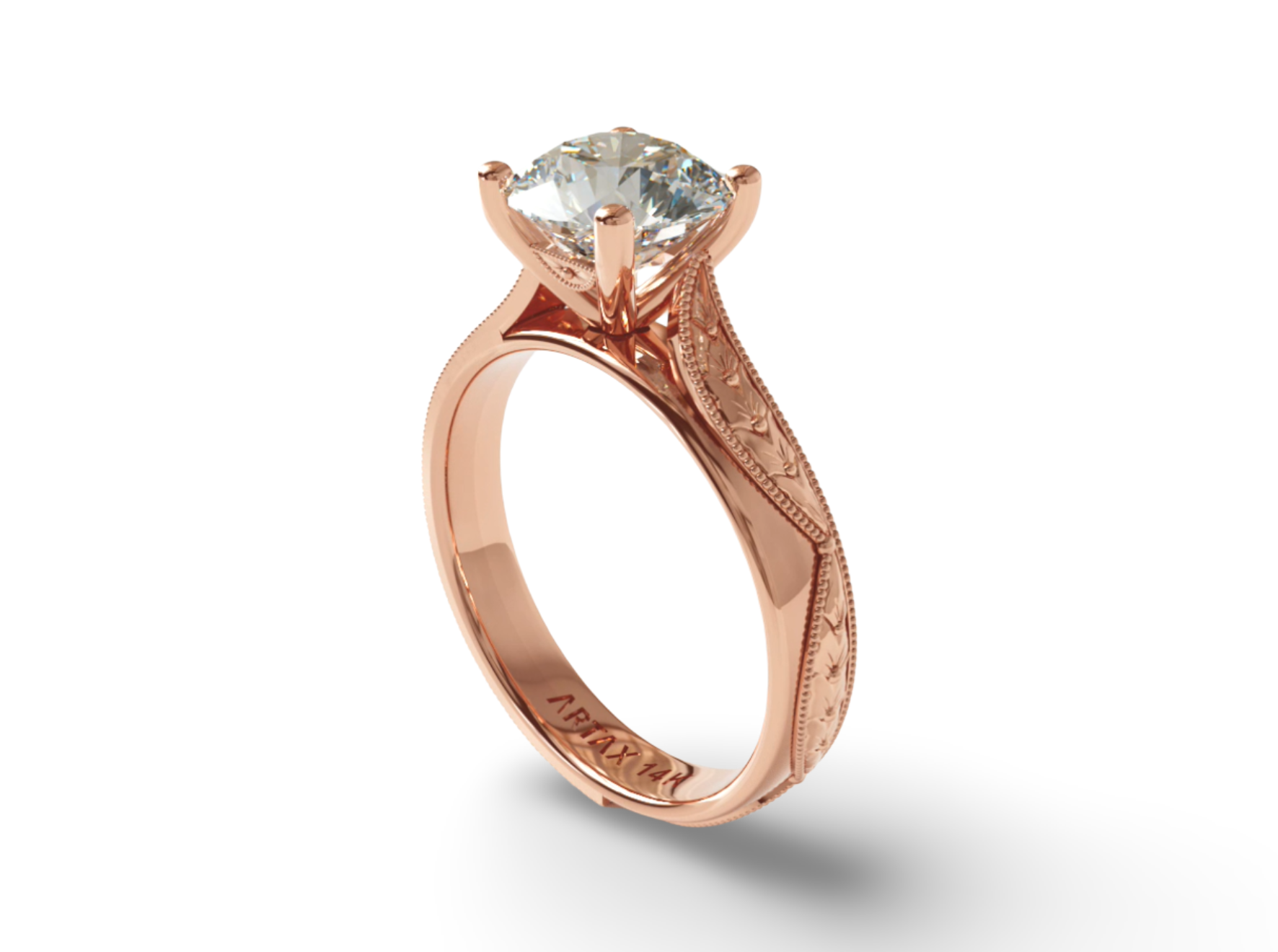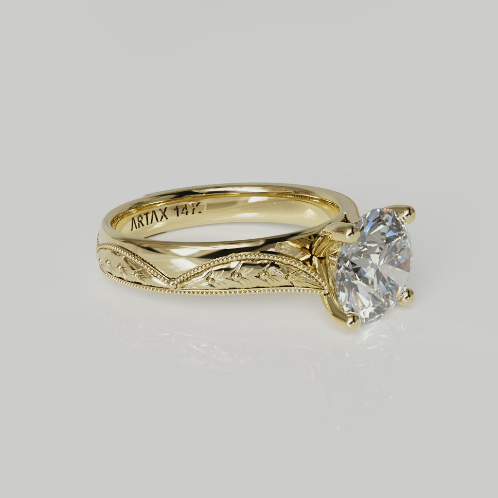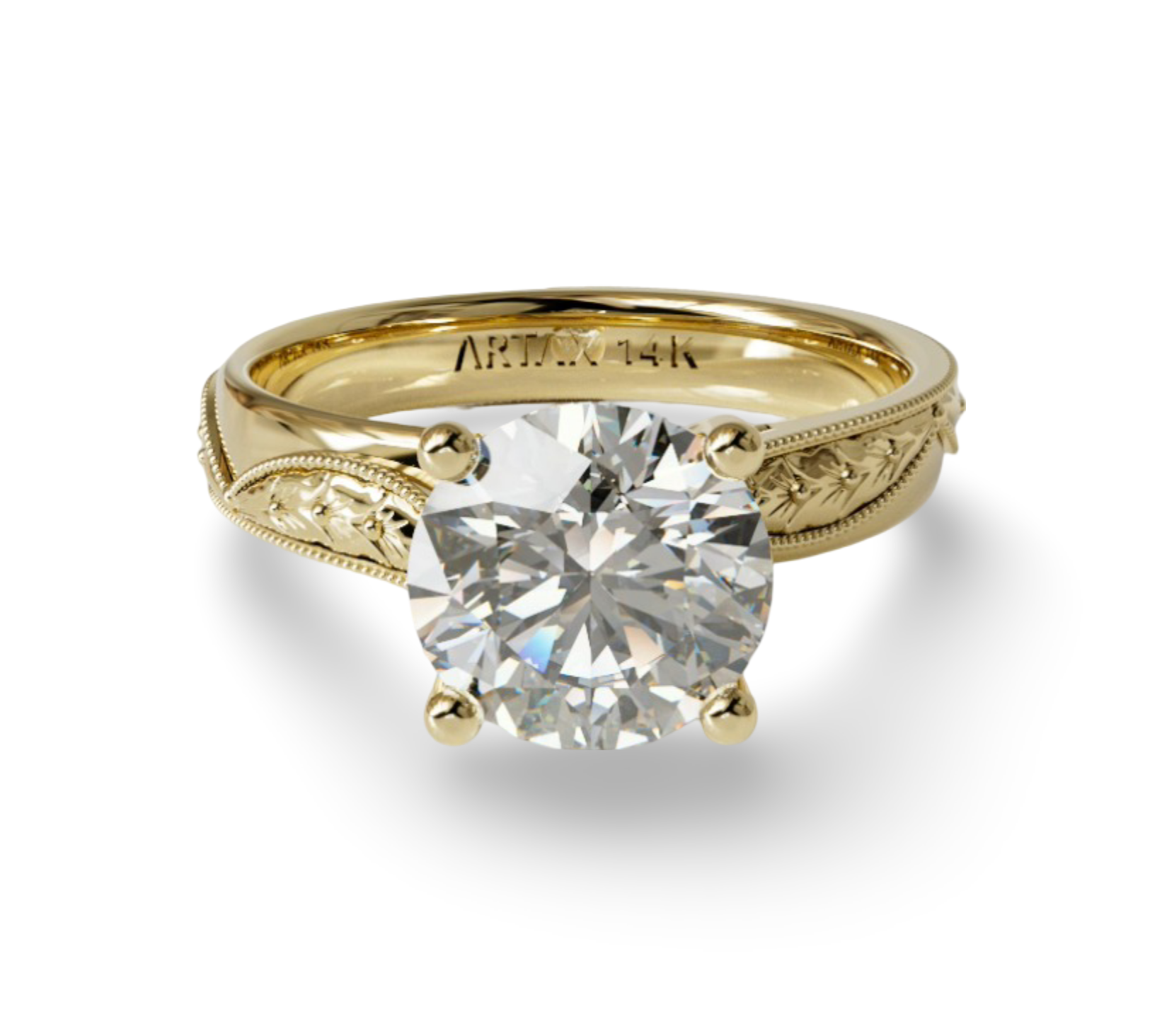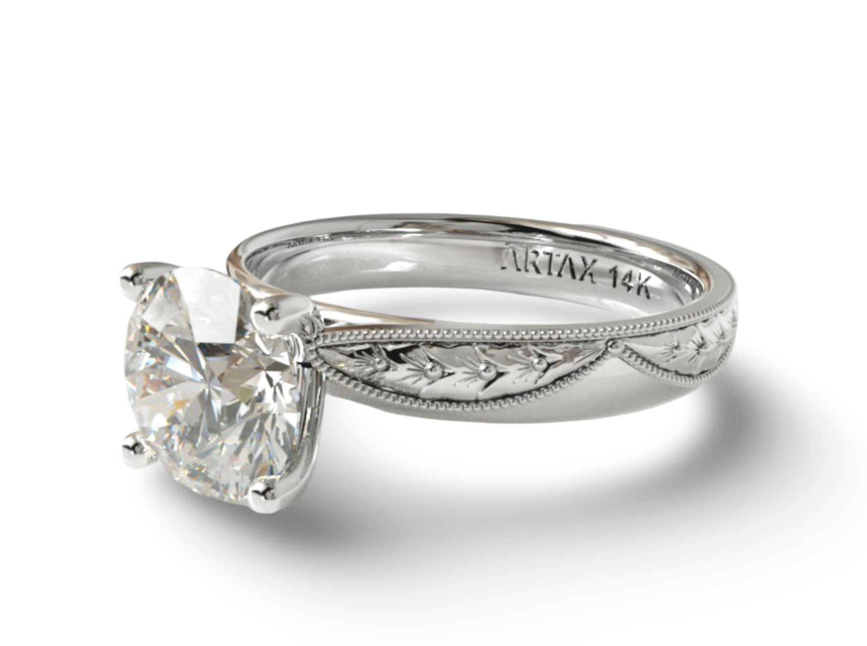 VERONA-E. 14k Double-Level Hand-Engraved Engagement Ring